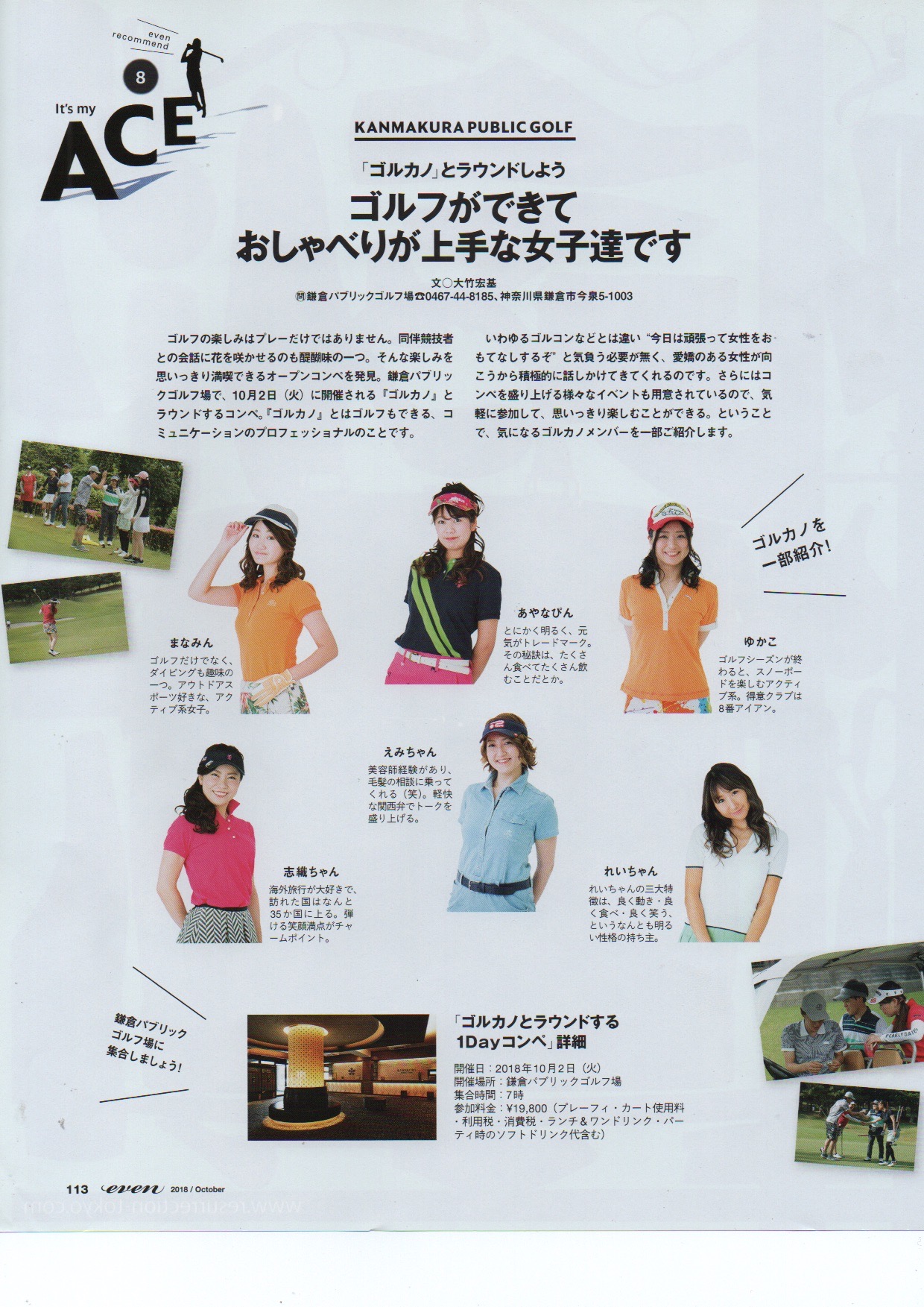 弊社が企画しました「ゴルカノとラウンドする1Dayコンペ」(鎌倉パブリックゴルフ場、2018年10月2日火曜日)が枻出版社「EVEN2018 …